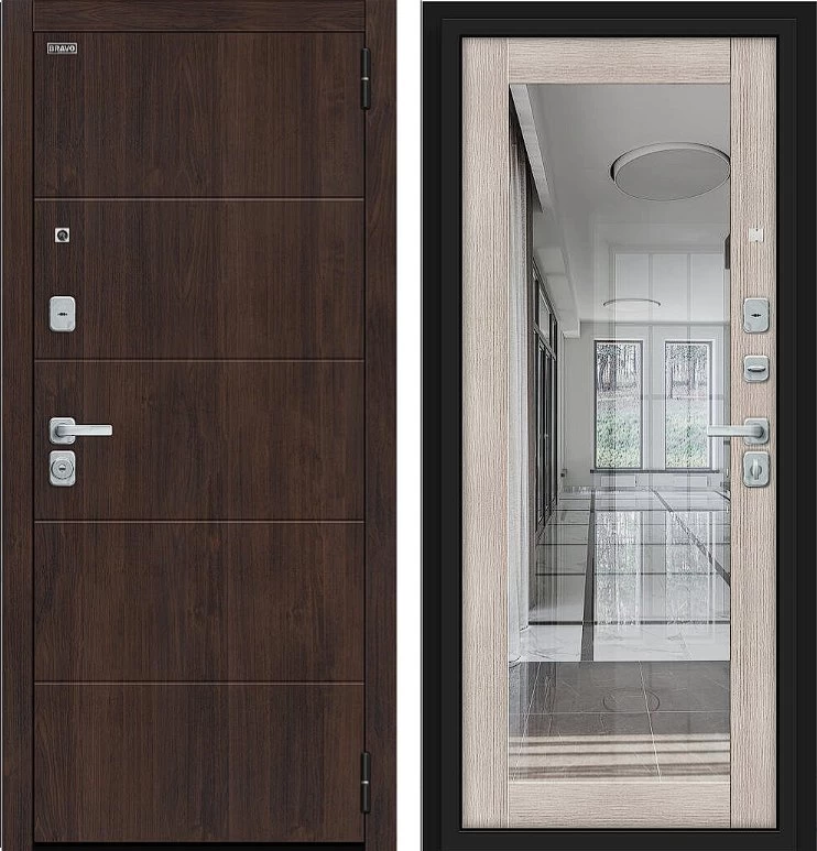 Надежная входная Дверь Браво Флэт/BChrome Almon/Cappuccino Melinga премиум класса по цене 42 207 руб. Большая толщина стали защитит от проникновения в ваш дом, квартиру или коттедж. Используется очень качественная фурнитура: замки, цилиндры, ручки, защелки. Покрытие и отделка двери изготовлено под внимательным контролем производителя. Дверь имеет долгий срок службы и гарантию.